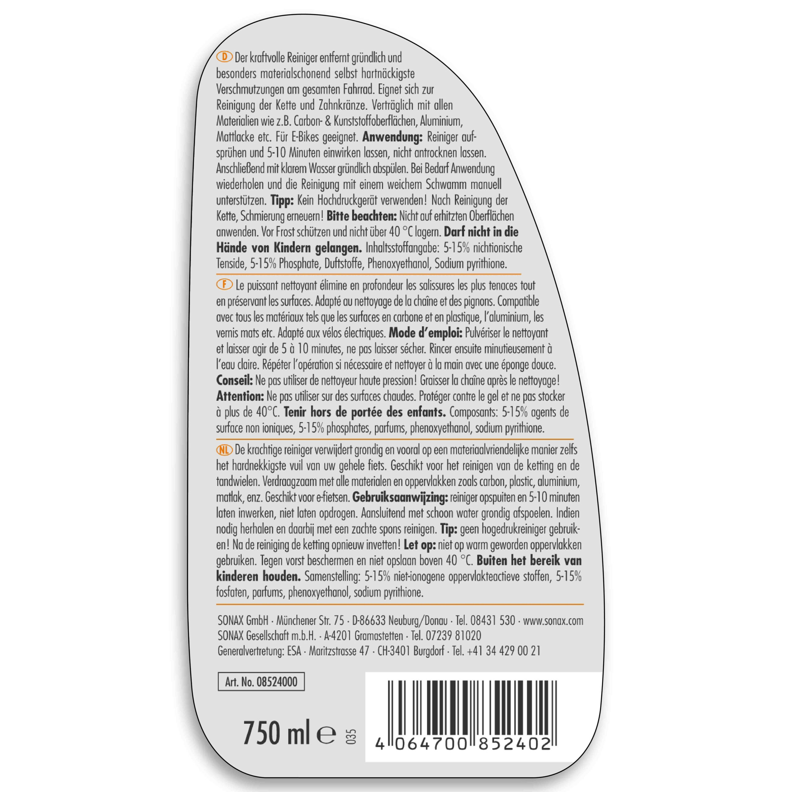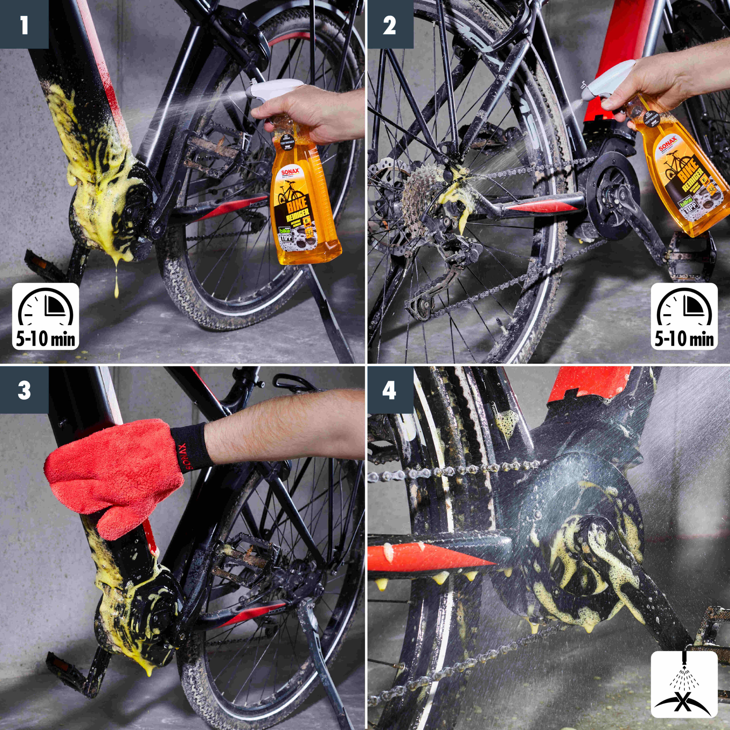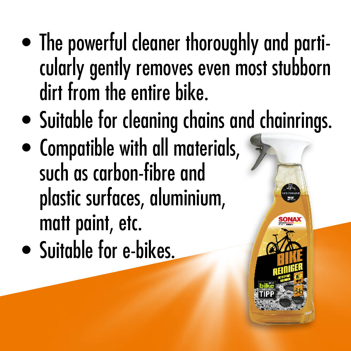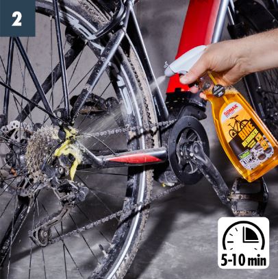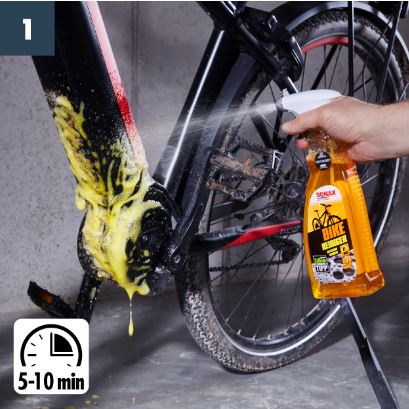 Powerful cleaner. Thoroughly and gently removes even most stubborn dirt from the entire bike. Suitable for e-bikes.