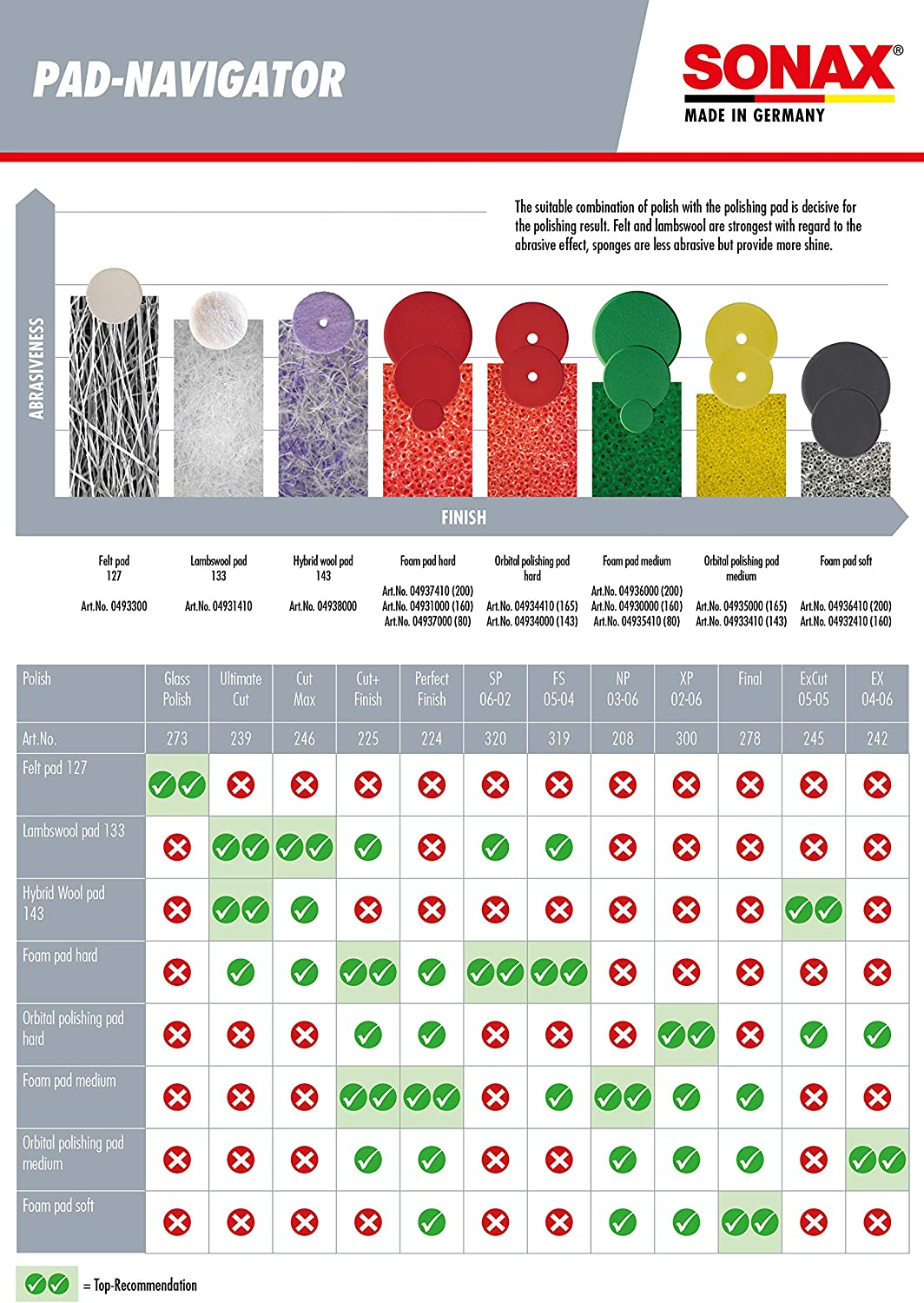 Medium-hard, fine-pored sponge for machine polishing of paint with rotary polishers. Fast disc change thanks to clip fastening.