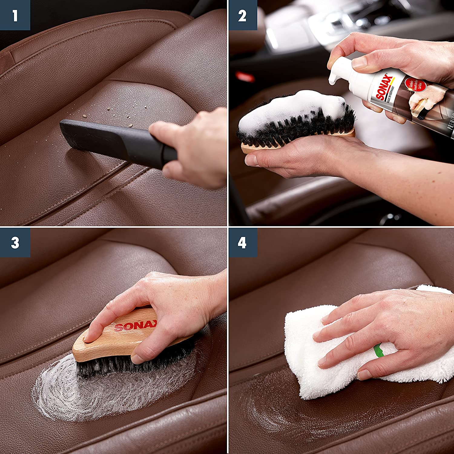 Effective cleaning and intensive care for all types of smooth leather. Gently and thoroughly removes even stubborn stains, without leaching out or harming the leather. Restores the leather’s natural pliability and original subtle gloss.