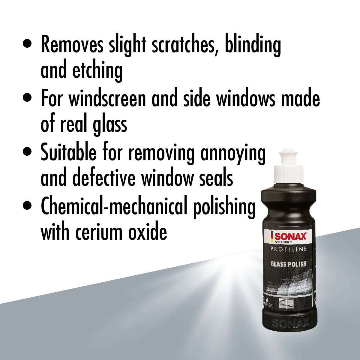 Removes slight scratches, dull and eroded spots from vehicle windscreens and windows made from real glass. Silicone-free