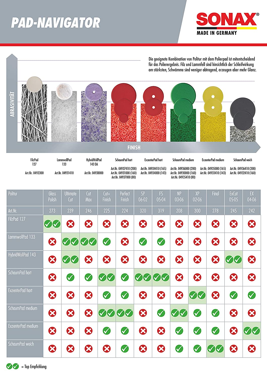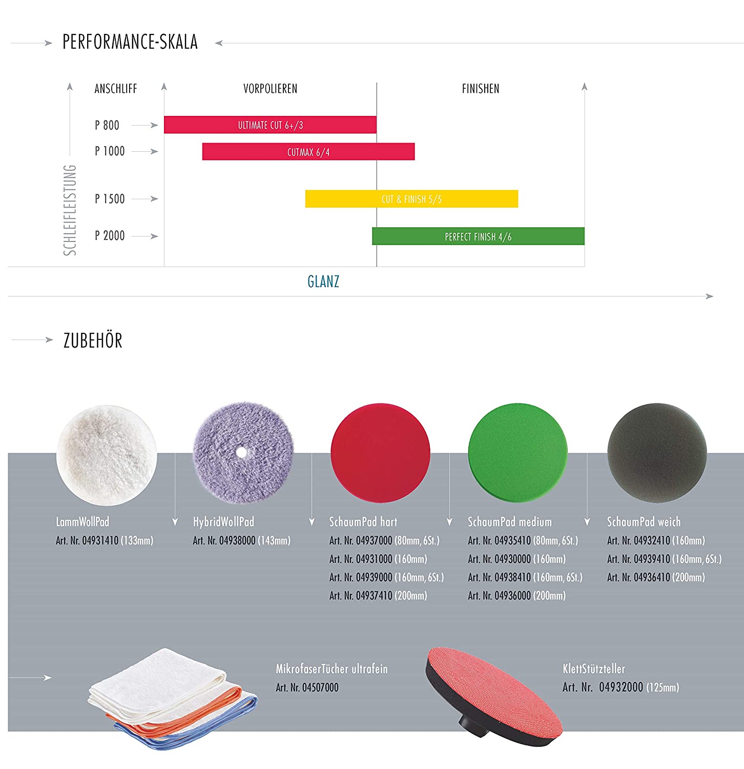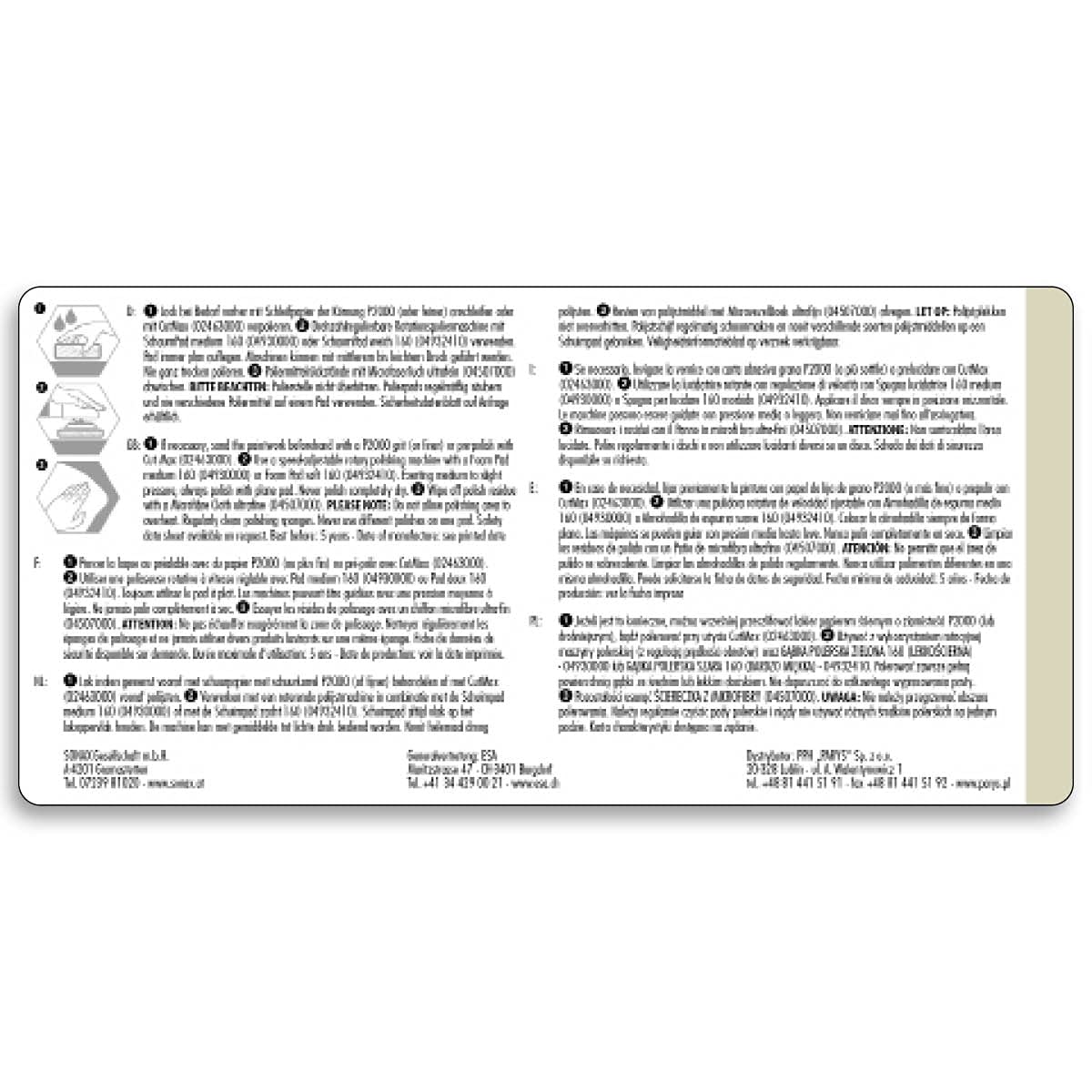 Finish polish for slightly scratched or pre-polished paintwork. Produces hologram-free, high-gloss finishes. Contains very homogeneous aluminium oxide with ultra-fine crystal structure.