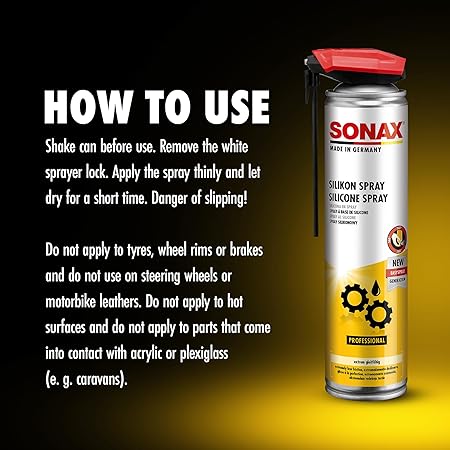 Lubricates, nourishes and protects rubber, plastic, wood and metal parts. Eliminates squeaking and creaking noises. The rich silicone film is water-repellent.